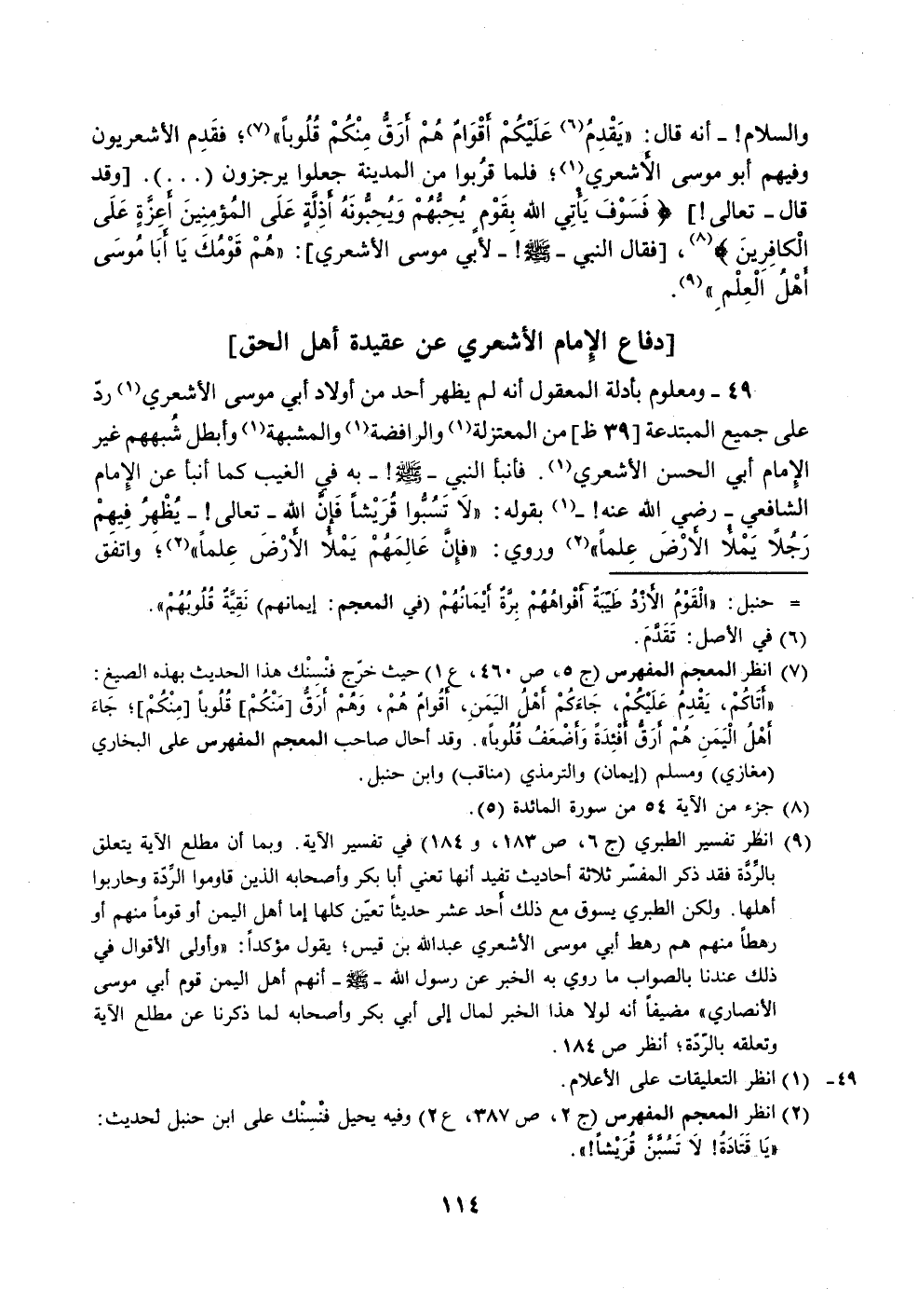 49 - ومعلوم بأدلة المعقول أنه لم يظهر أحد من أولاد أبي موسى الأشعري (1) رد