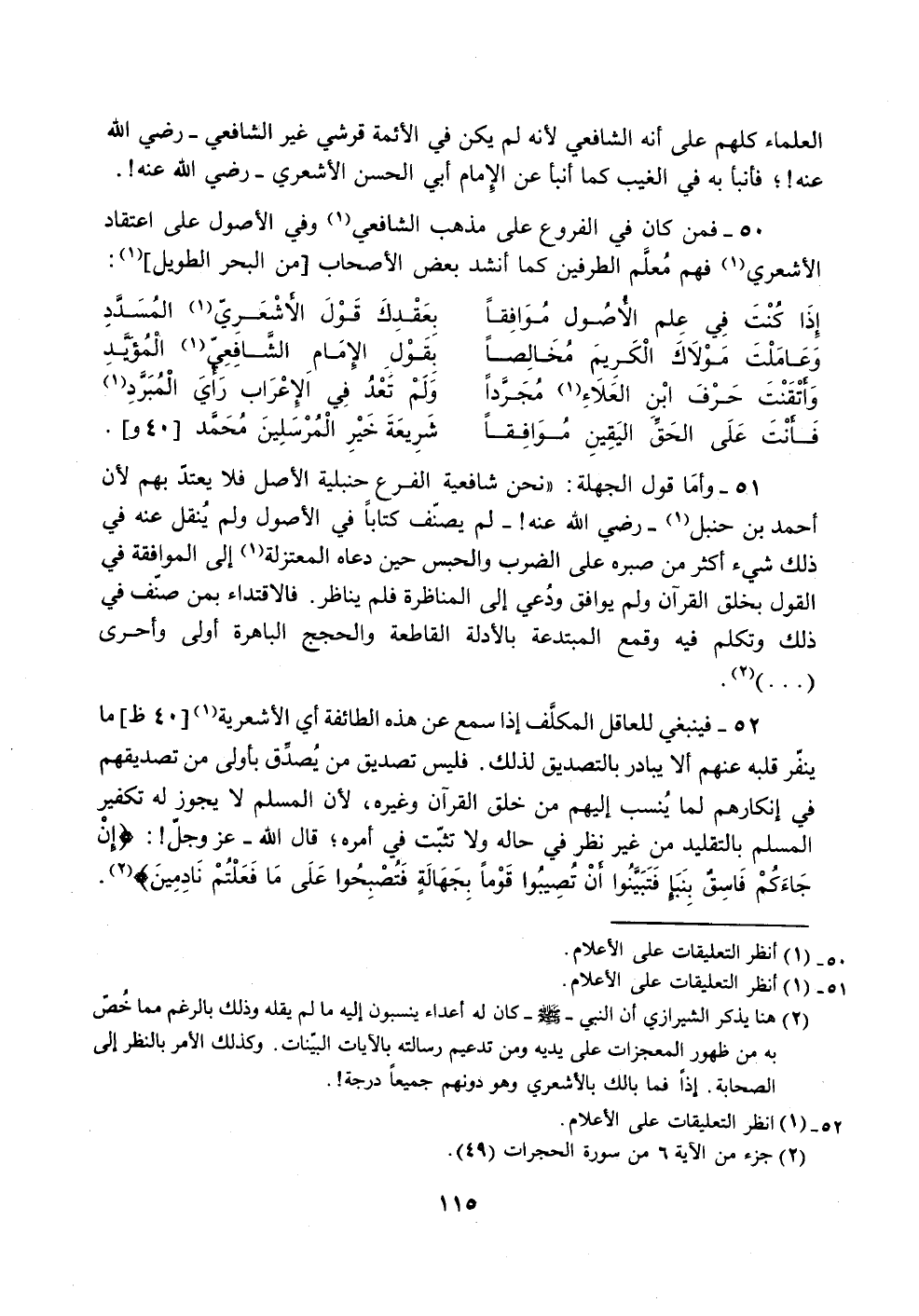 50 - فمن كان في الفروع على مذهب الشافعي (1) وفي الأصول على اعتقاد