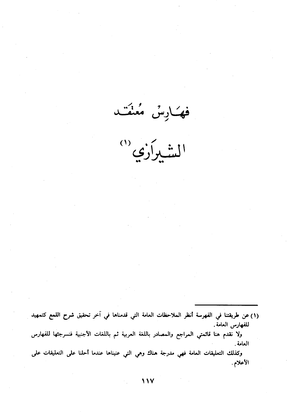 (1) عن طريقتنا في الفهرسة انظر الملاحظات العامة التي قدمناها في اخر تحقيق ضرح اللمع كتمهيد