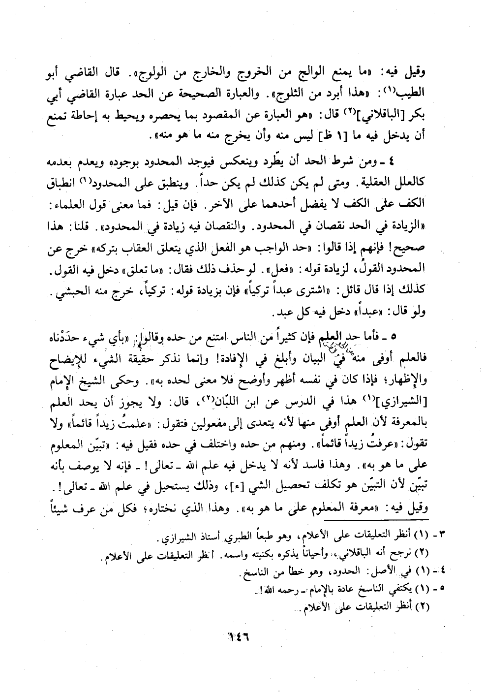 (2) نرجح أنه الباقلاني،6 وأحيانا يذكره بكنيته واسمه. ا. ظو التعليقات على الأكلام.