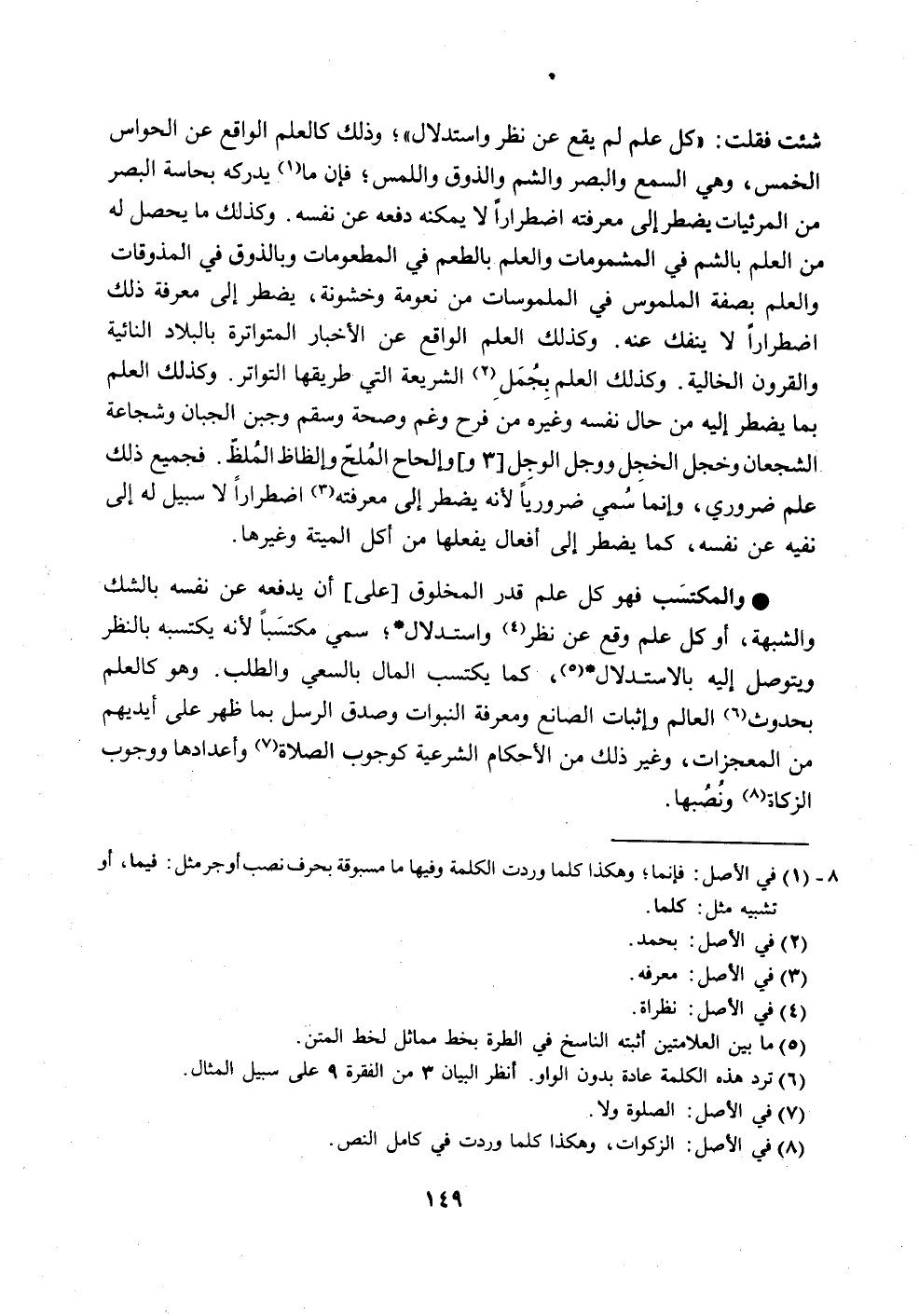 والشبهة، او كل علم وقع عن نظر3) واستدلال *؛ سمي مكتسبا لأنه يكتسبه بالنظر