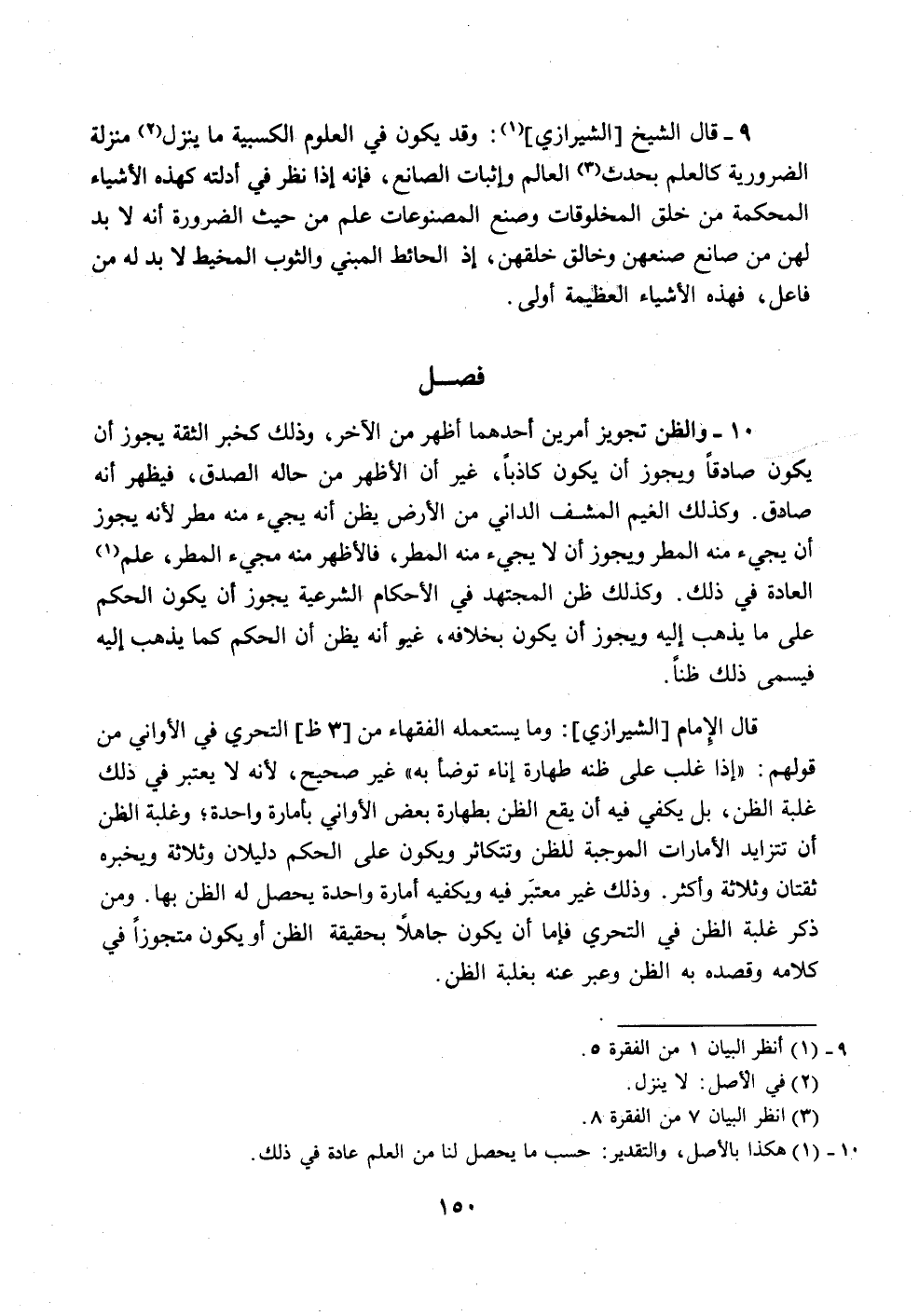 9 - قال الشيخ [الشيرازي] (1): وقد يكون في العلوم الكسبية ما ينزل (2) منزلة