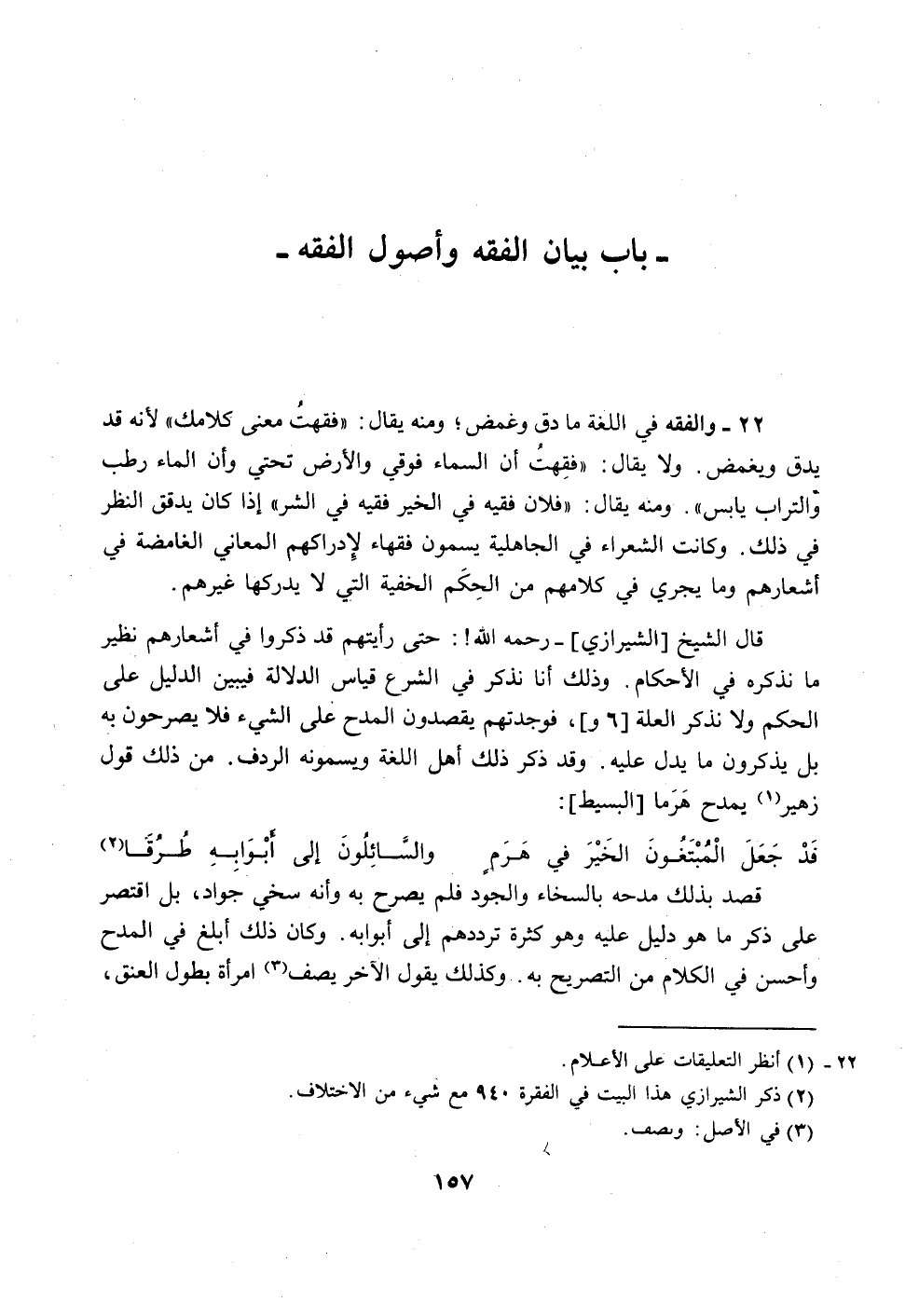 (2) ذكر الشيرازي هذا البيت في الفقرة.94 مع شيء من الاختلاف.