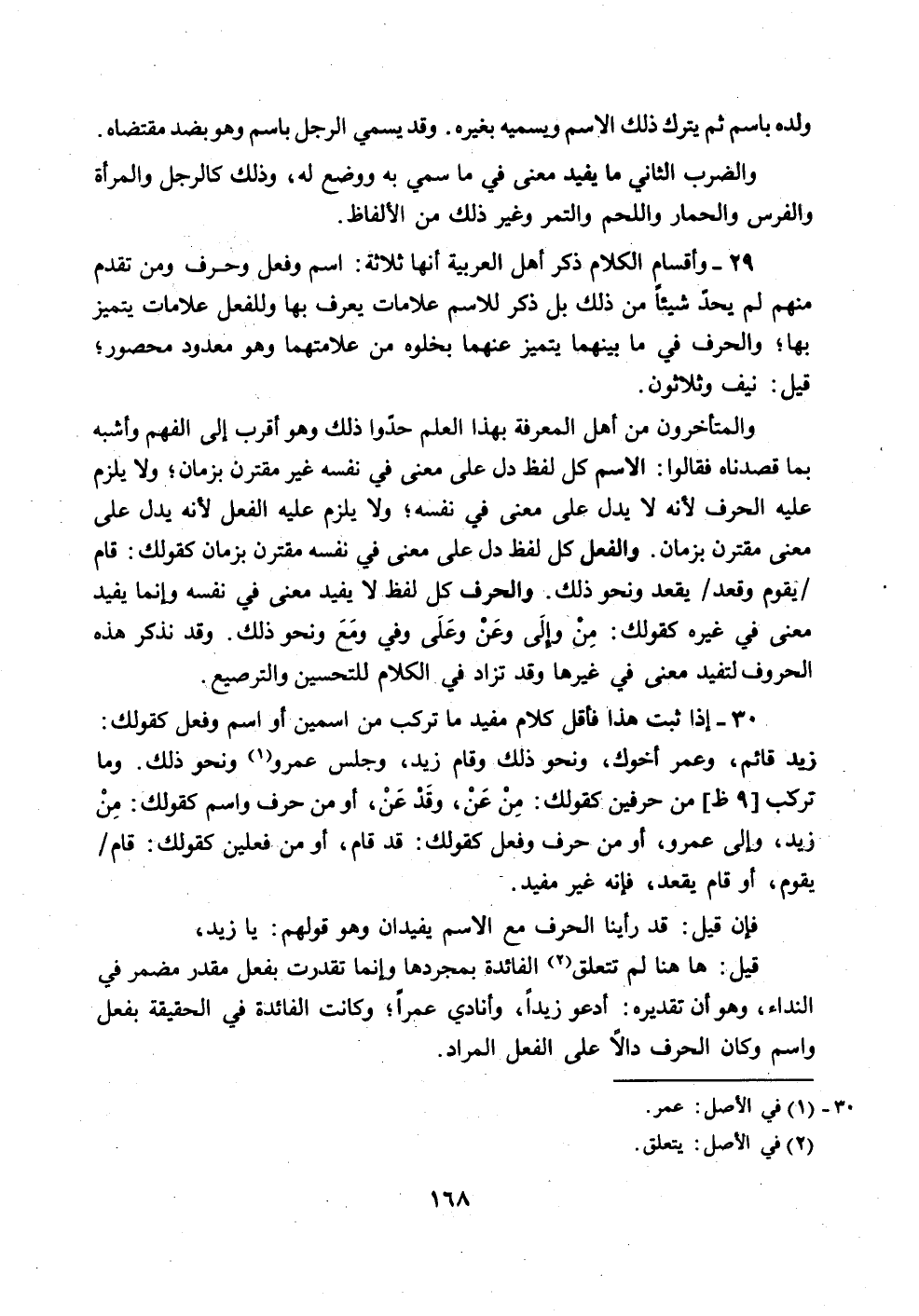 30 - إذا ثبت هذا فاقل كلام مفيد ما تركب من اسمين أو اسم وفعل كقولك: