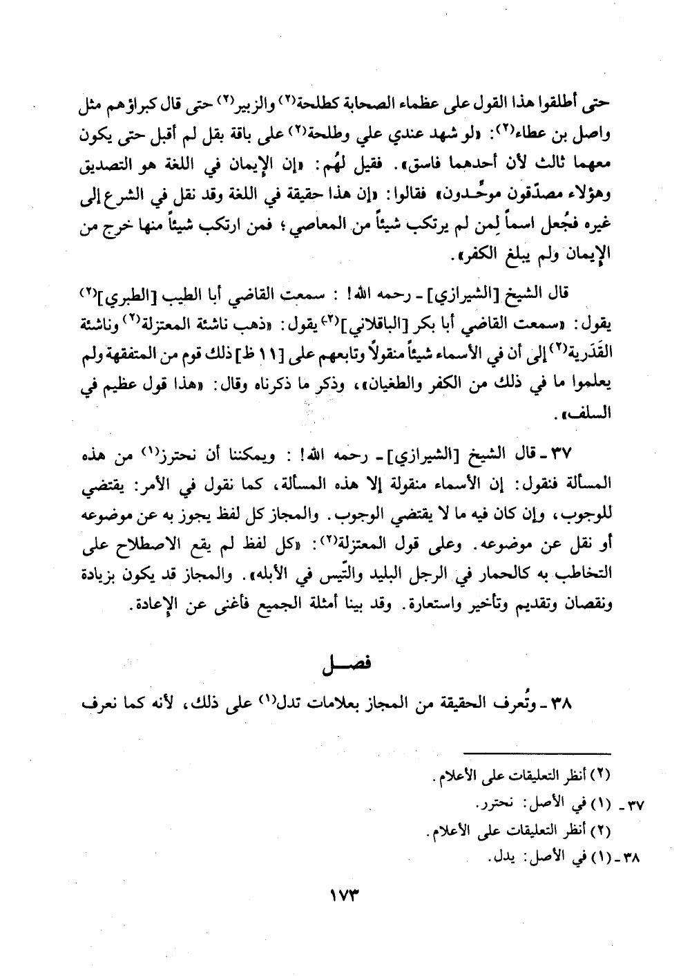 38 - وتعرف الحقيقة من المجاز بعلامات تدل (1) على ذلك، لأنه كما نعرف