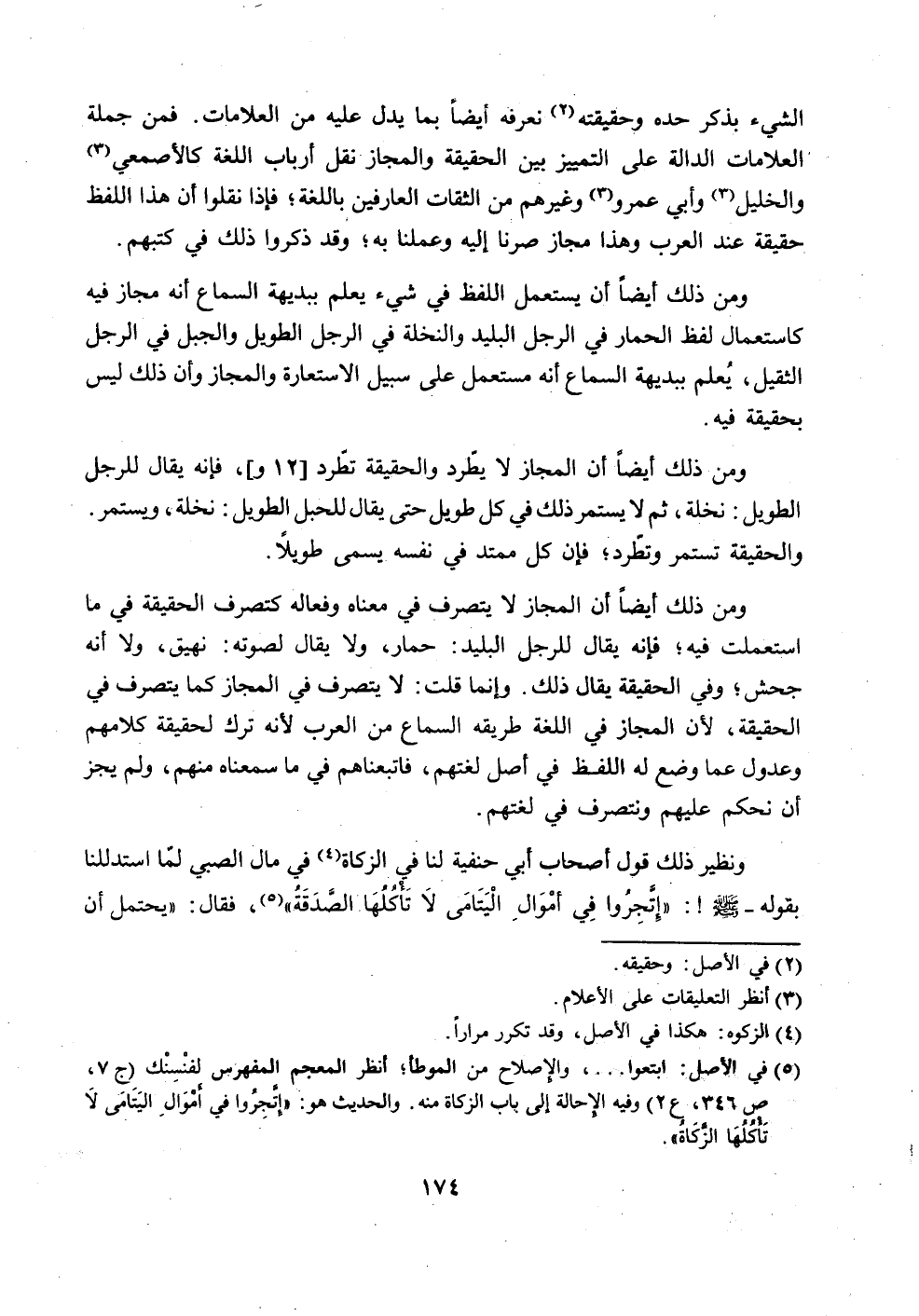 حقيقة عند العرب وهذا مجاز صرنا اليه وعملنا به؛ وقد ذكروا ذلك في كتبهم.