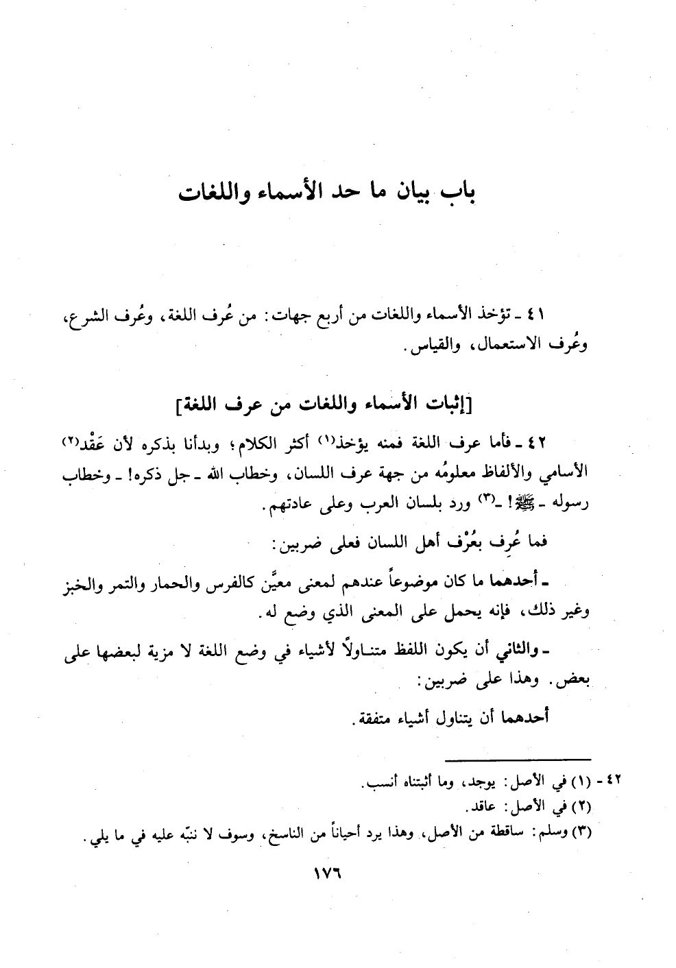 42 - فاًما عرف اللغة فمنه يؤخذ (1) أكثر الكلام؛ وبدأنا بذكره لأن عقد (2)