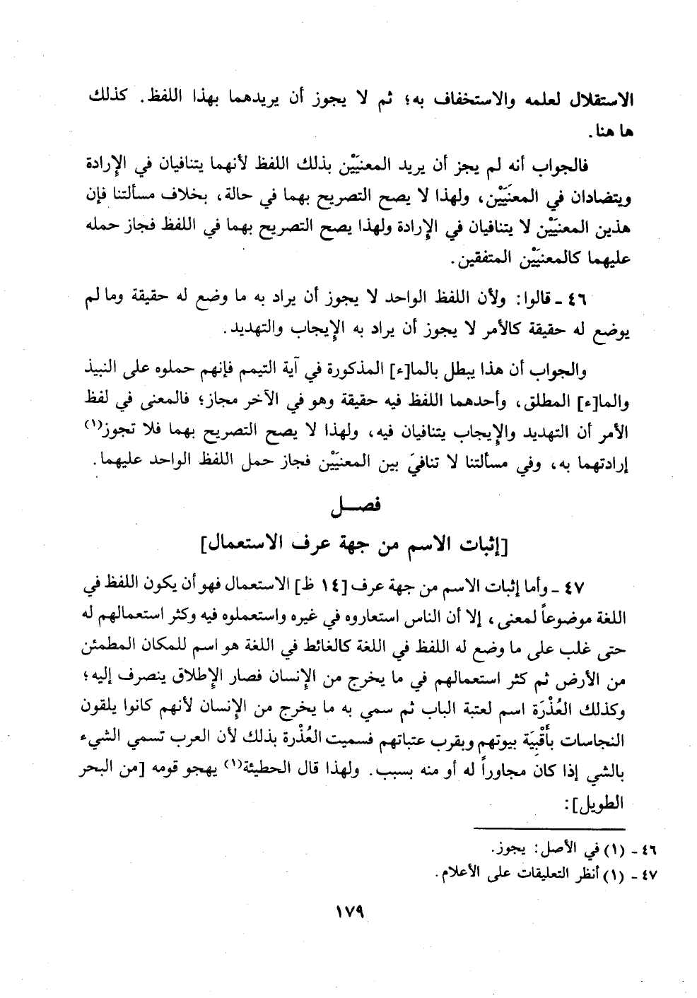 47 - وأما إثبات الاسم من جهة عرف [14 ظ] الاستعمال فهوأن يكون اللفظ في