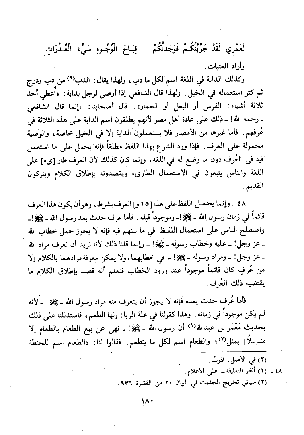 48 - وإنما يحمل اللفظ على هذا [ه 1 و] العرف بشرط، وهوأن يكون هذا العرف