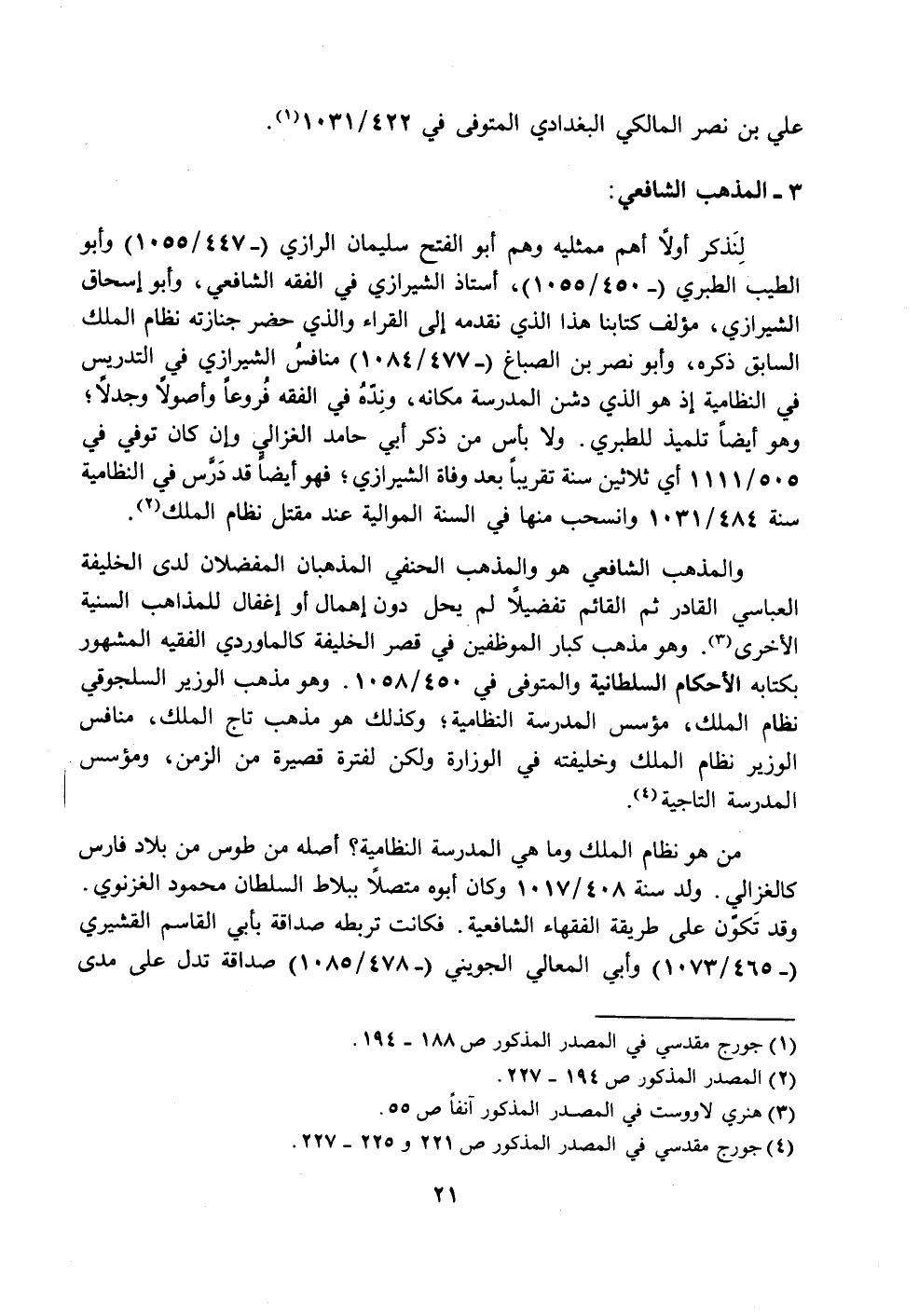 (4) جورج مقدسي في المصدر المذكور ص 221 و 225 - 227.