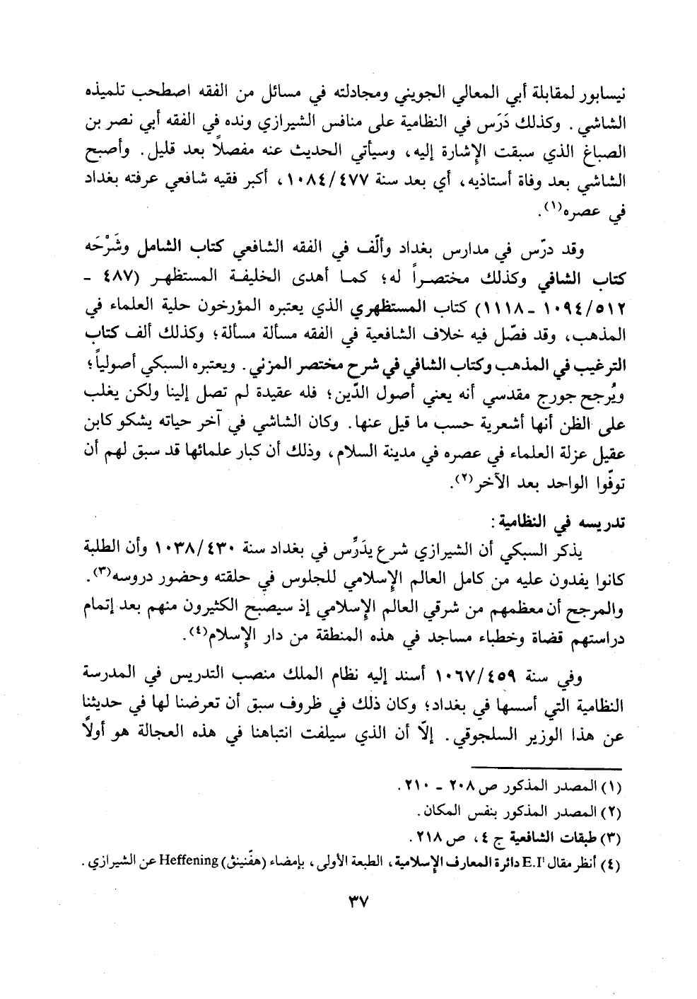 النظامية التي أسسها في بغداد؛ وكان ذلك في ظروف سبق أن تعرضنا لها في حديثنا