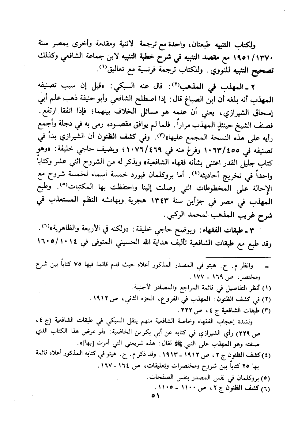 (2) في كشف الظنون: المهذب دي الفروع، الجزء الثاني، ص 1912.