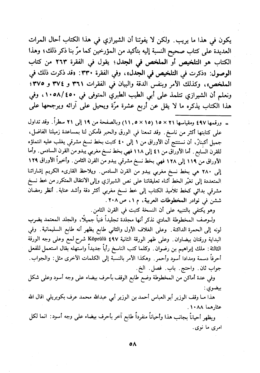 ونعلم أن الشيرازي تتلمذ على أبي الطيب الطبرى المتوفى في 58/ 450. 1، وفي