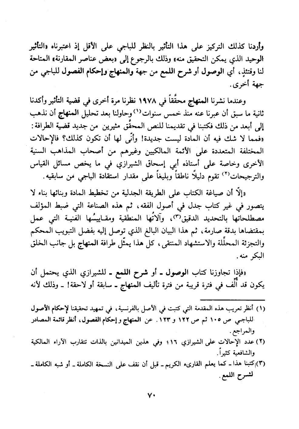 للباجي ص 5. 1 ثم ص 122 و 123. عن المنهاج و (حكام الفصول، أنظر قائمة المصادر