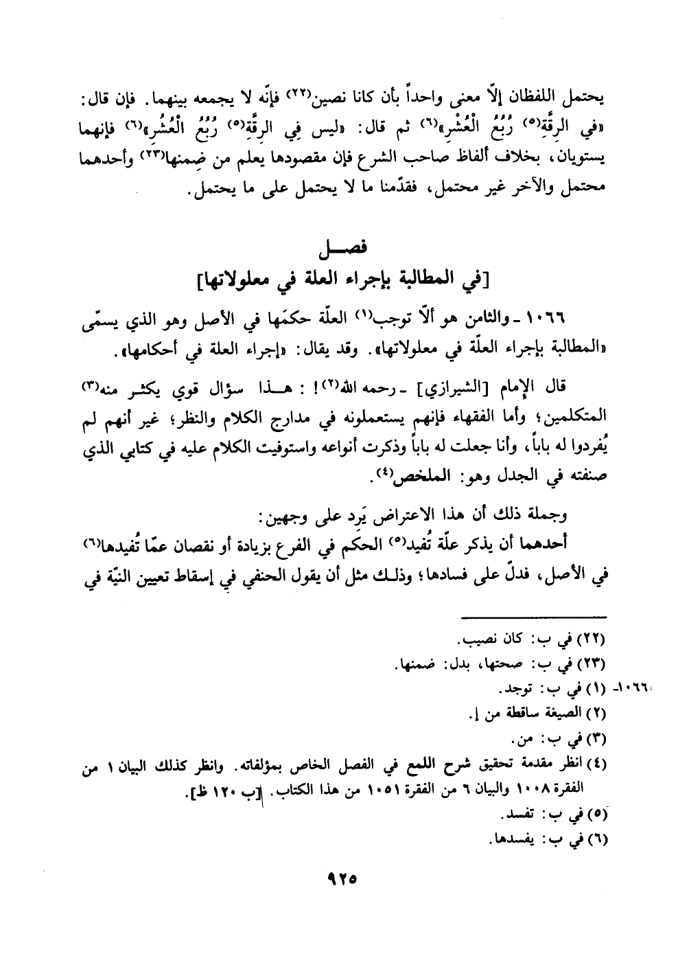 1066 - والثامن هو إلا توجب (1) العلّة حكمها في الأصل وهو الذي يسفى