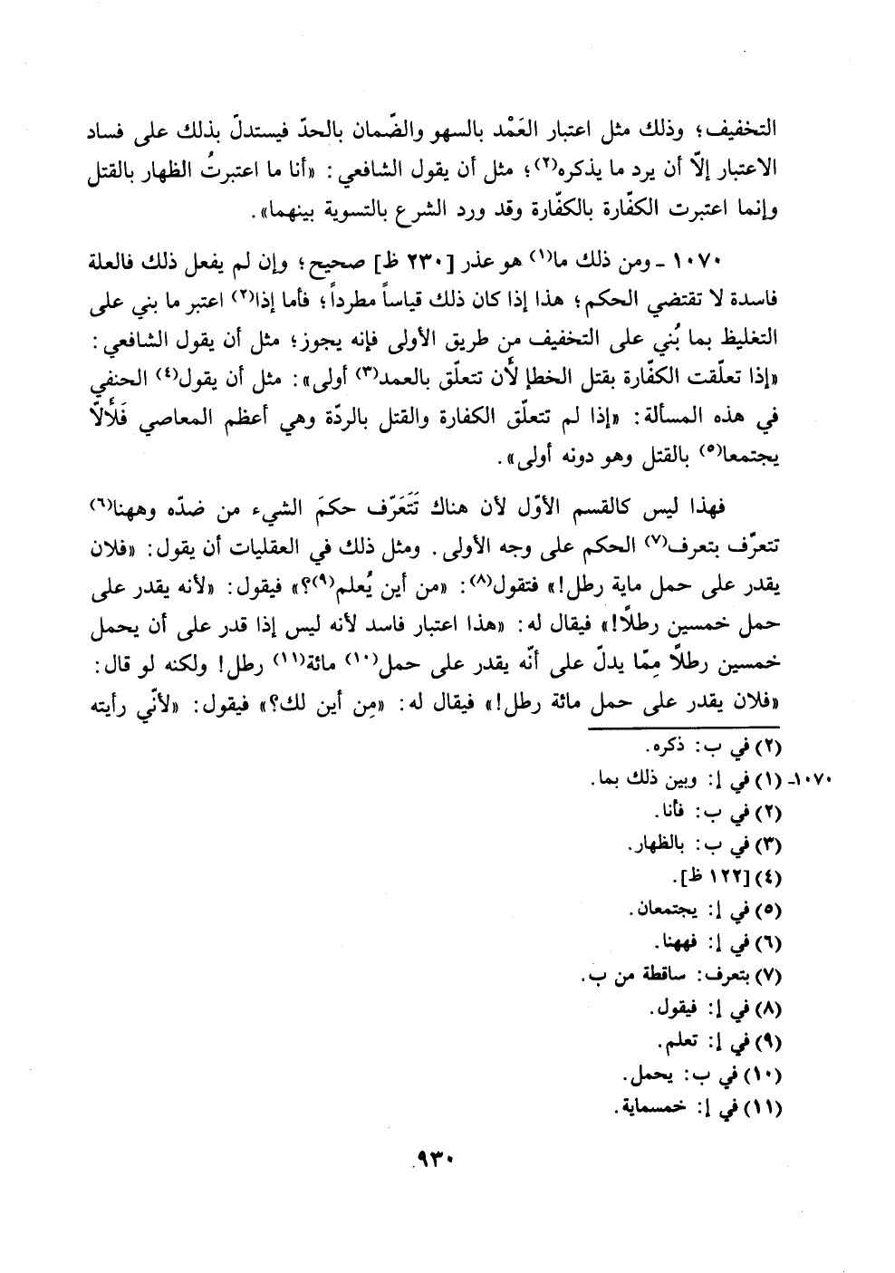 1070 - ومن ذلك ما (1) هو عذر [230 ظ] صحيح؛ وإن لم يفعل ذلك فالعلة