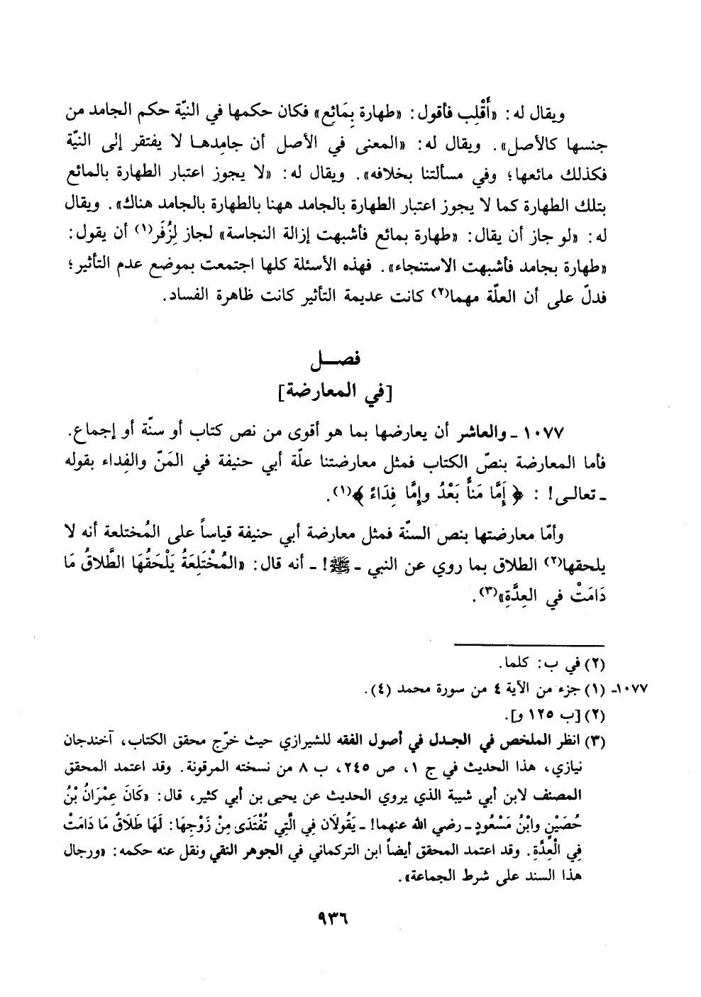 بتلك الطهارة كما لا يجوز اعتبار الطهارة بالجامد ههنا بالطهارة بالجامد هناك ". ويقال