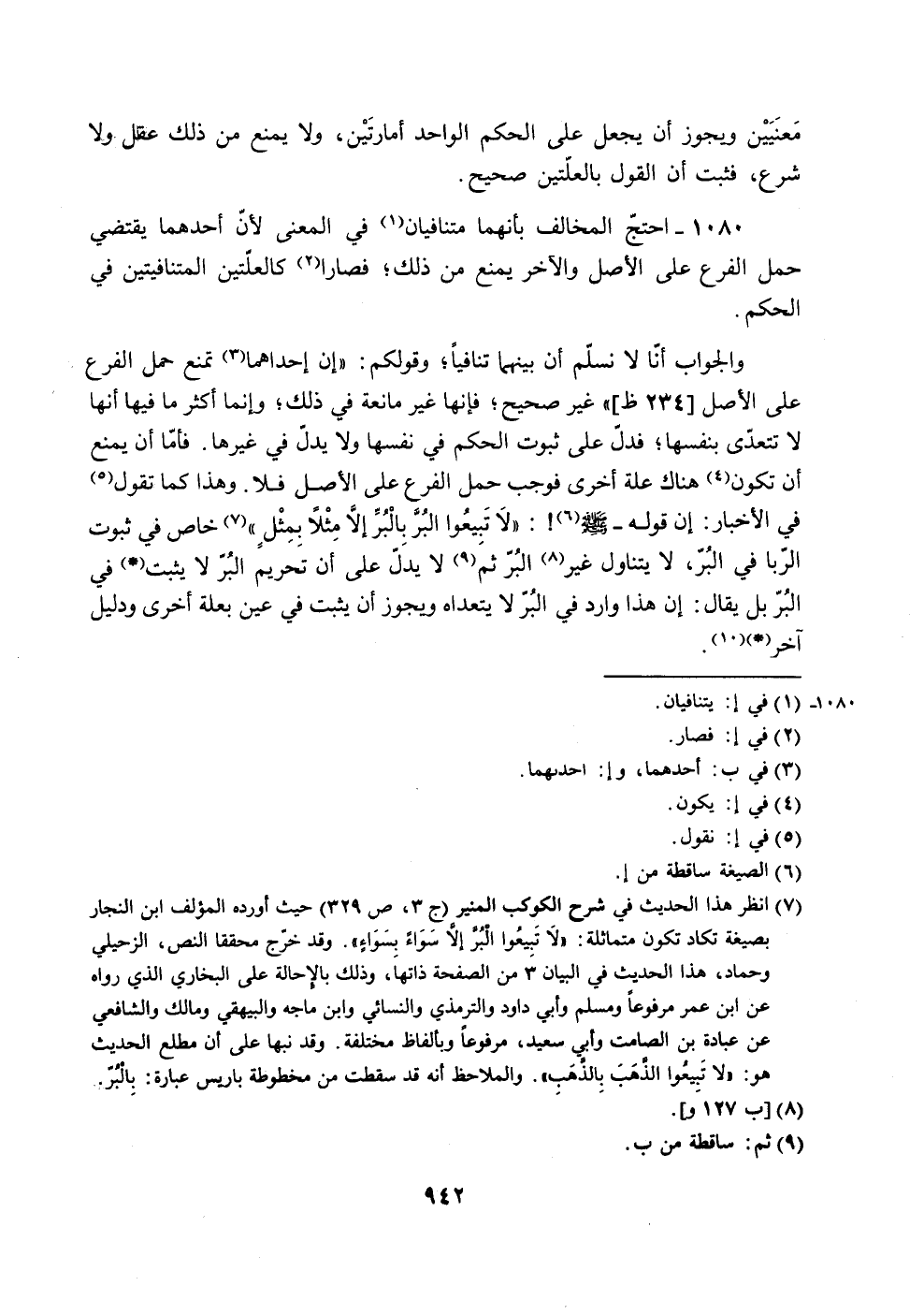 الربا في البر، لا يتناول غير (8) البر تم (9) لا يدل على أن تحريم البر لا يثبت (ى في