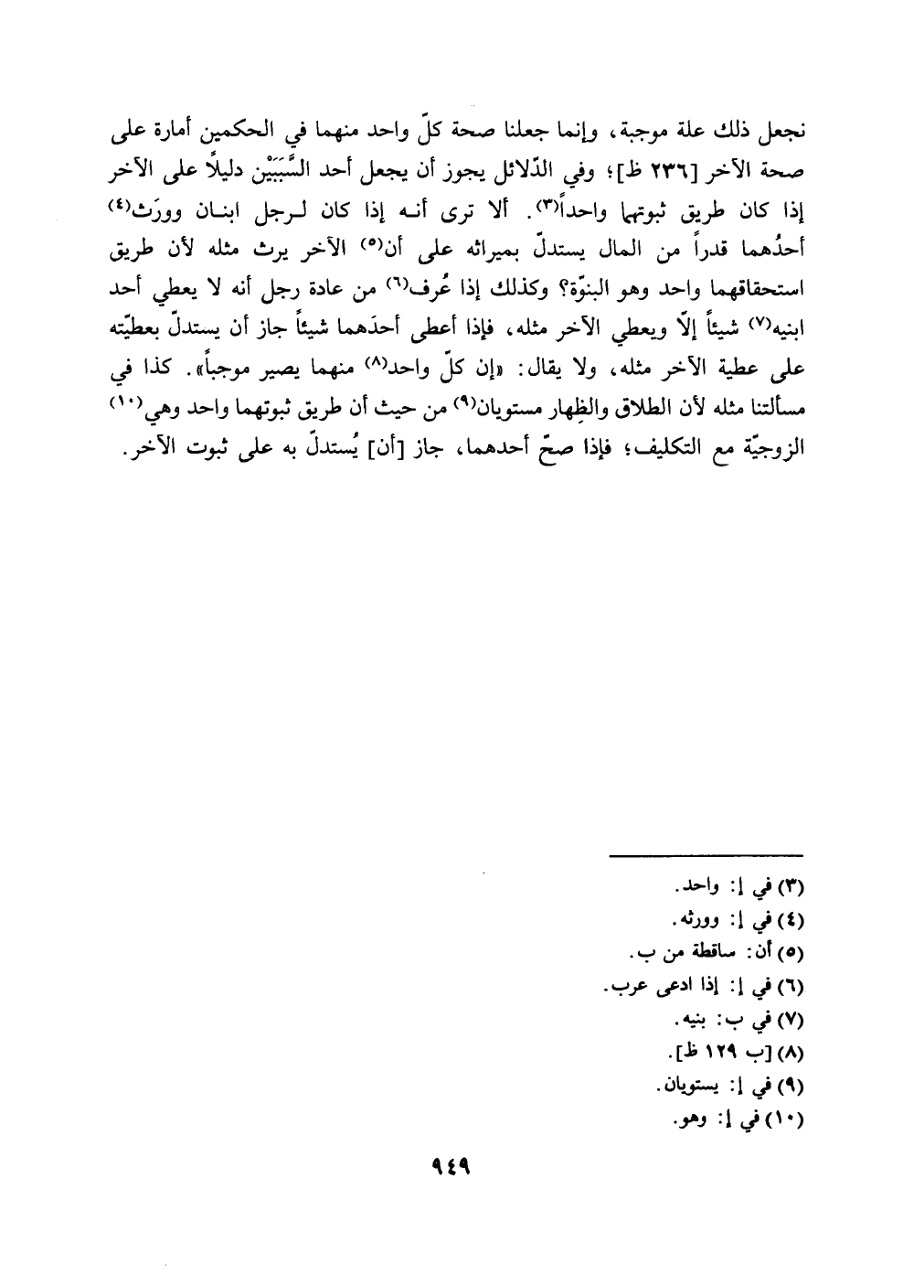 صحة الآخر [236 ظ]؛ وفي الدلائل يجوز أن يجعل أحد ال! ببين دليلا على الآخر