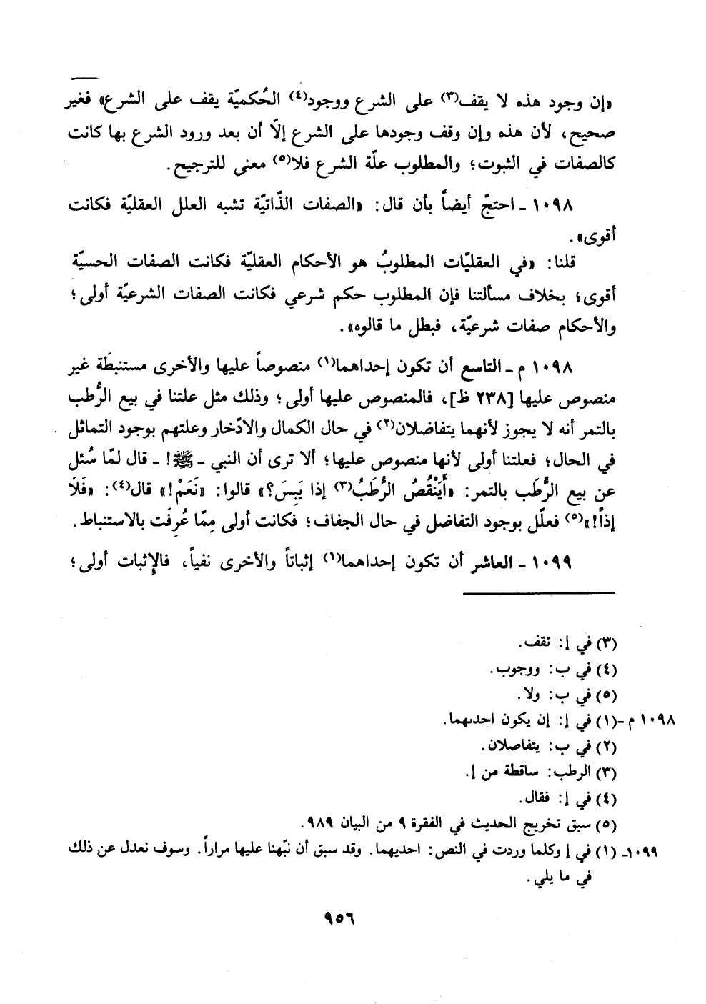 1098 م -التاسع أن تكون إحداهما (؟) منصوصا عليها والأخرى مستنبطة غير