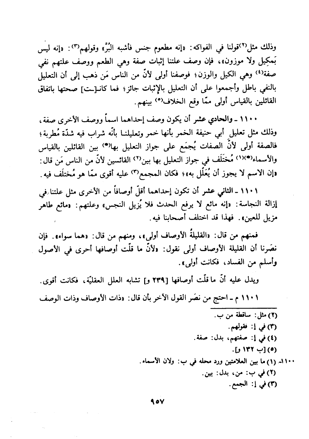 1101 - الثاني عشر أن تكون إحداهما أقل أوصافا من الأخرى مثل علتنا/في