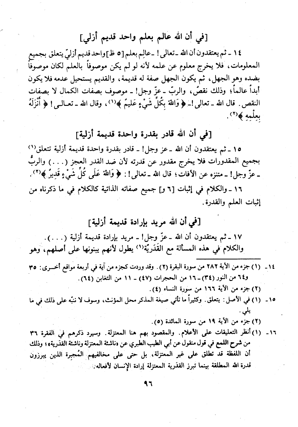 16 - (1) أنظر التعليقات على الأعلام، والمقصود بهم هنا المعتزلة. وسيرد ذكرهم في الفقرة 6 3