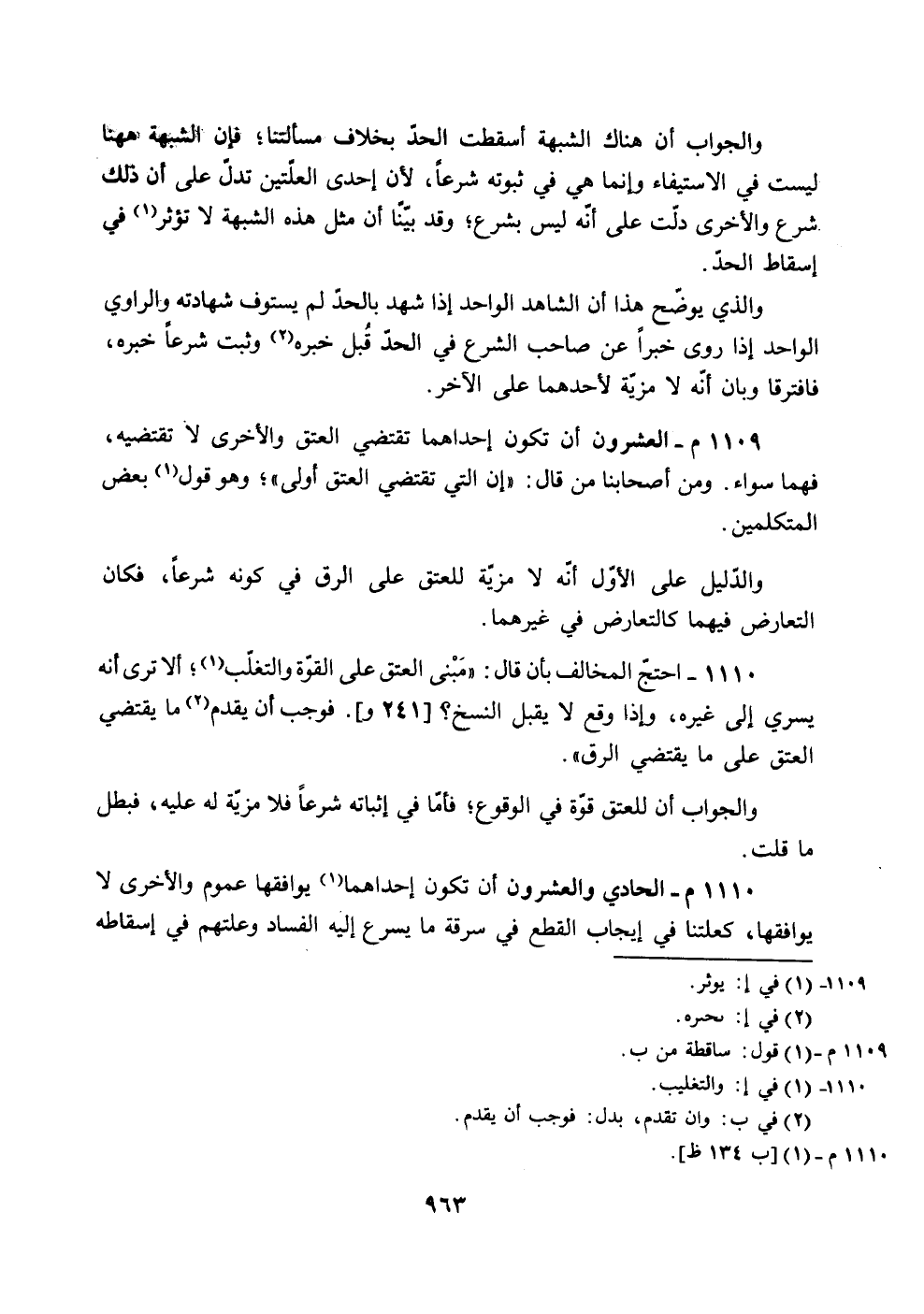 1109 م -العشرون أن تكون احداهما تقتضي العتق والأخرى '. تقتضيه،
