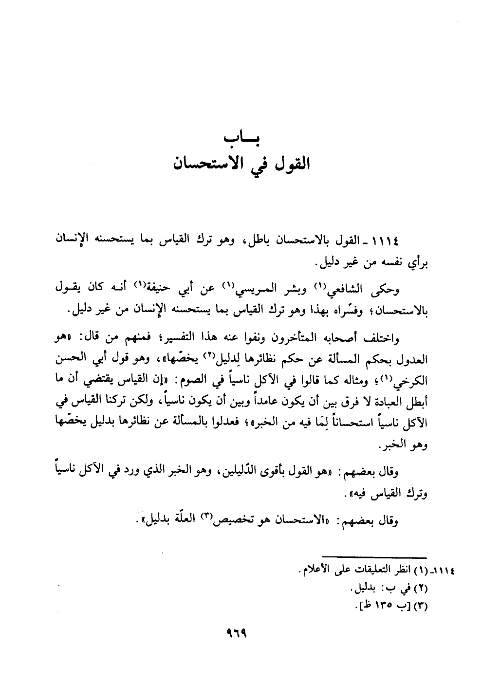 1114 - القول بالاستحسان باطل، وهو ترك القياس بما يستحسنه الإنسان