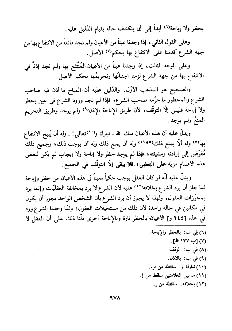 ولا اباحة فليس إ إلَّا التوقف، لأن طريق الإباحة الإذن (9)) ولم يوجد وطريق التحريم