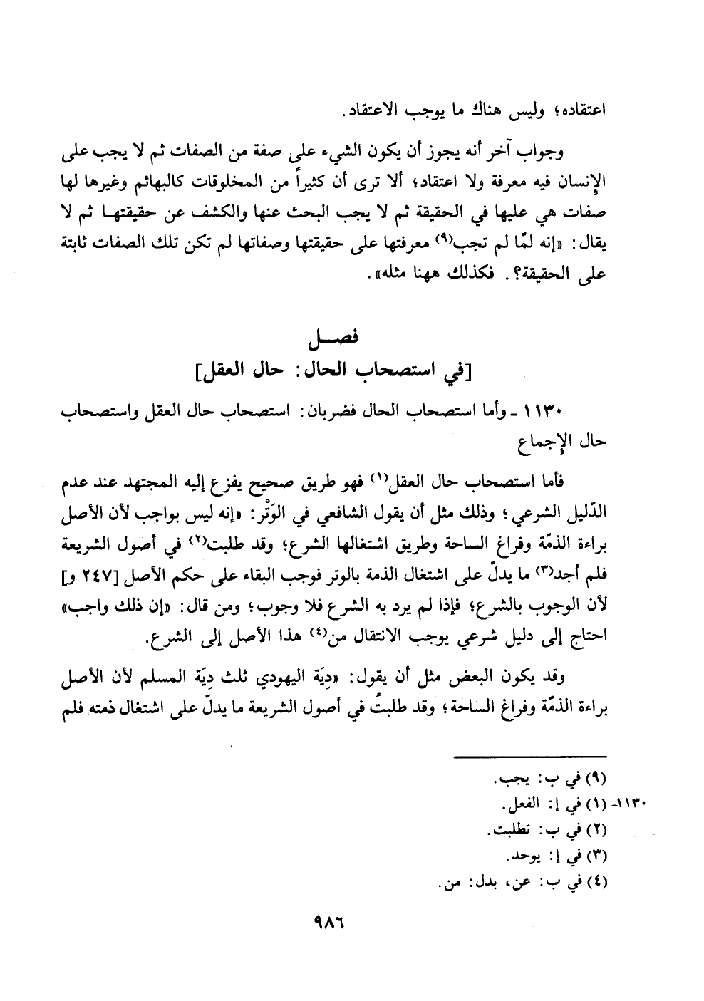 1130 - وأما استصحاب الحال فضربان: استصحاب حال العقل واستصحاب