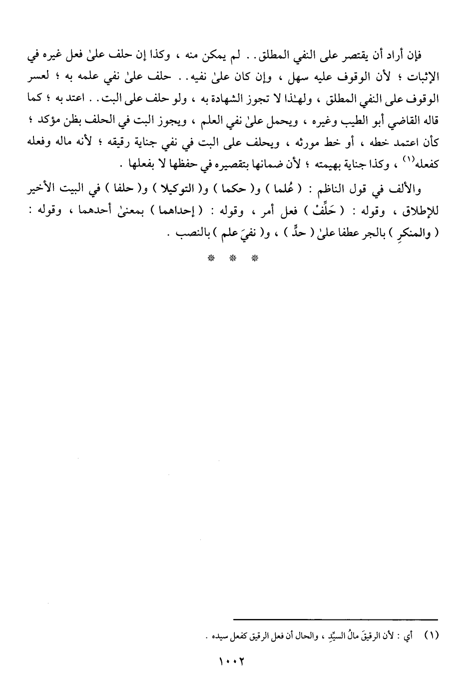 والألف في قول الناظم: (عُلما) و (حكما) و (التوكيلا) و (حلفا) في البيت الأخير للإطلاق, وقوله: (حَلَّفْ) فعل أمر, وقوله (إحداهما) بمعنى أحدهما, وقوله: (والمنكرِ) بالجر عطفاً على (حد? ) , (ونفيَ علم) بالنصب.