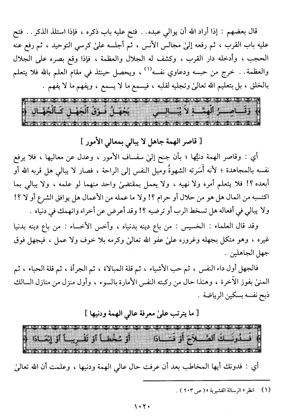 (وقاصر الهمة لا يبالي ... يجهل فوق الجهل كالجهال)