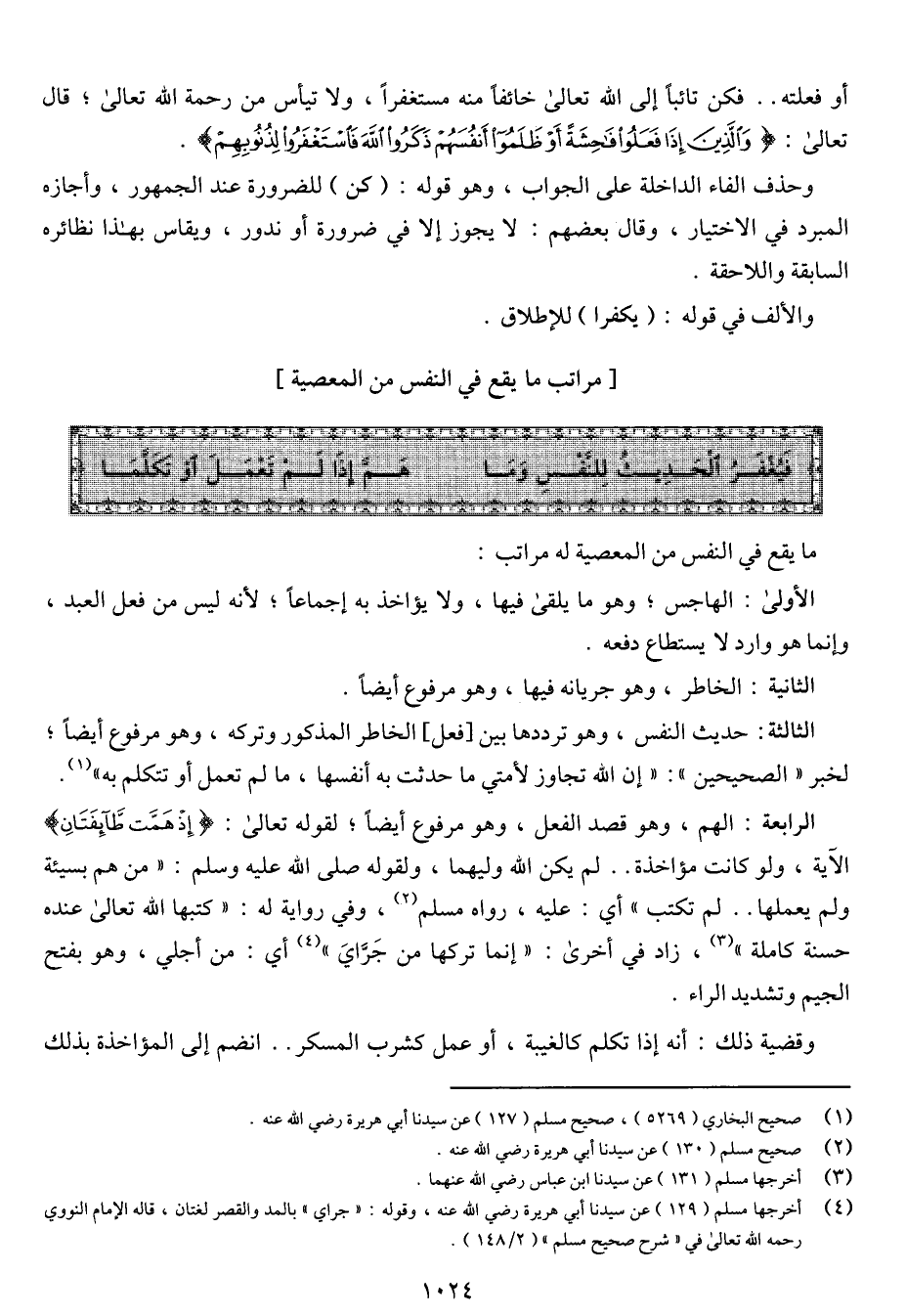 ما يقع في النفس من المعصية له مراتب: