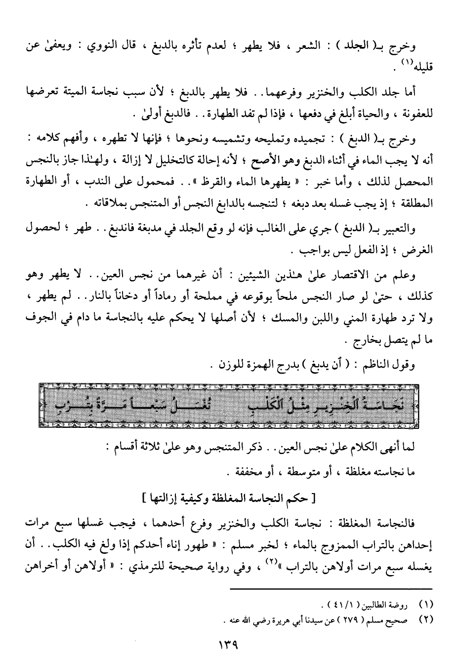 (نجاسة الخنزير مثل الكلب ... تُغسل سبعاً مرةً بترب)