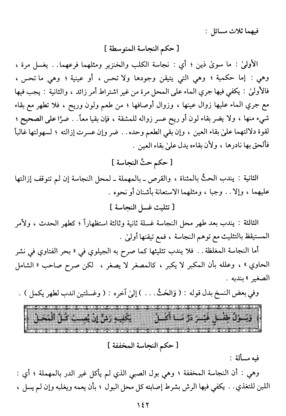 (وبول طفلٍ غير درٍّ ما أكل ... يكفيه رشٌّ إن يصب كل المحل)