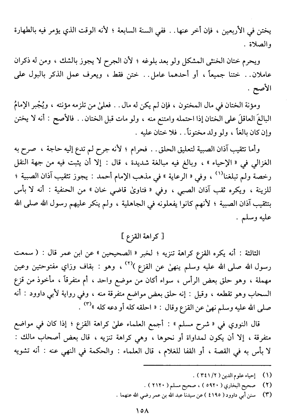 الثالثة: أنه يكره القزع كراهة تنزيه؛ لخبر "الصحيحين" عن ابن عمر قال: "سمعت رسول الله صلى الله عليه وسلم ينهى عن القزع)، وهو: بقاف وزاي مفتوحتين وعين مهملة، وهو حلق بعض الرأس، سواء أكان من موضع واحد، أم مفترقاً، مأخوذ من قزع السحاب وهو تقطعه، وقيل: إنه حلق بعض مواضع متفرقة منه، وفي رواية لأبي داود: أنه صلى الله عليه وسلم نهى عن القزع وقال: "احلقه كله أو دعه كله".