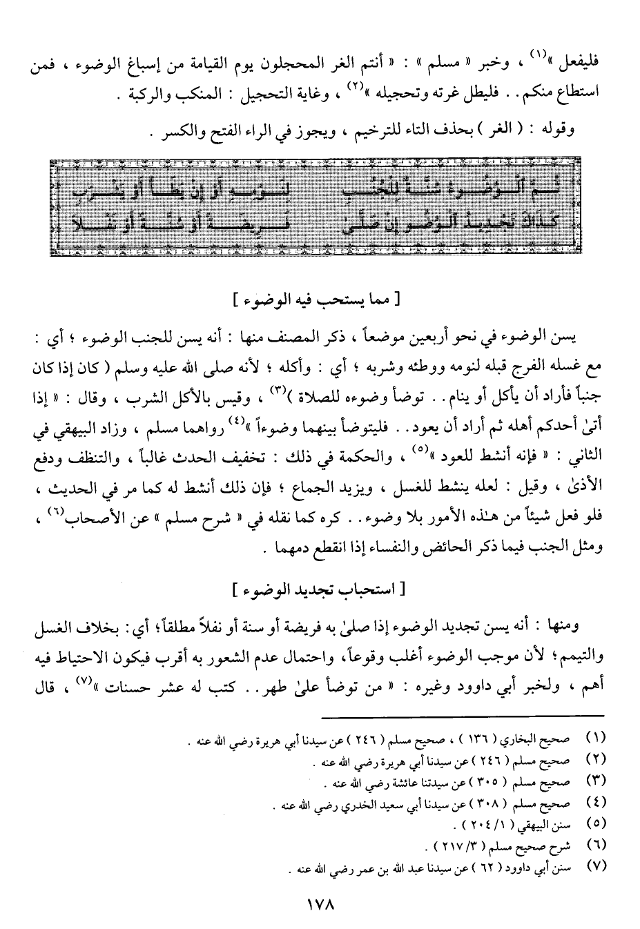 فليفعل"، وخبر "مسلم": "أنتم الغر المحجلون يوم القيامة من إسباغ الوضوء، فمن استطاع منكم .. فليطل غرته وتحجيله"، وغاية التحجيل: المنكب والركبة.