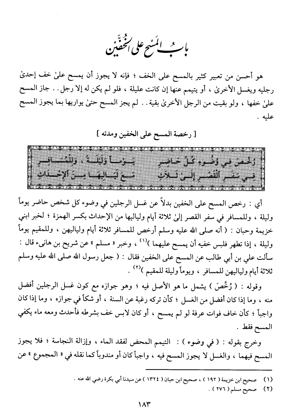 (رُخِّص في وضوء كل حاضر ... يوماً وليلةً، وللمسافر)
