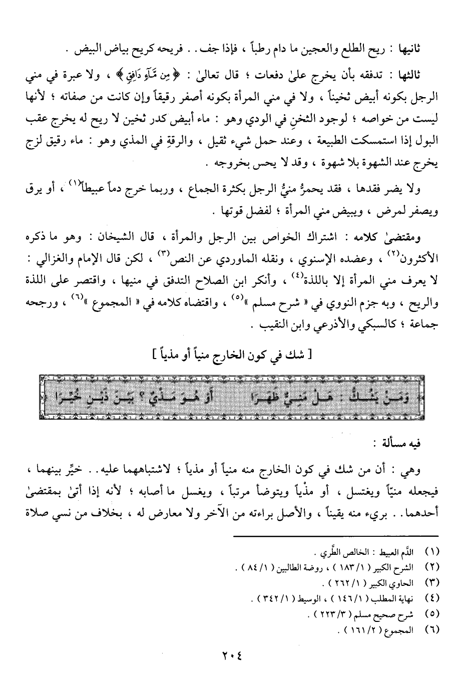 (ومن يشك: هل منيٌّ ظهرا ... أو هو مذيٌ؟ بين ذينِ خيِّرا)
