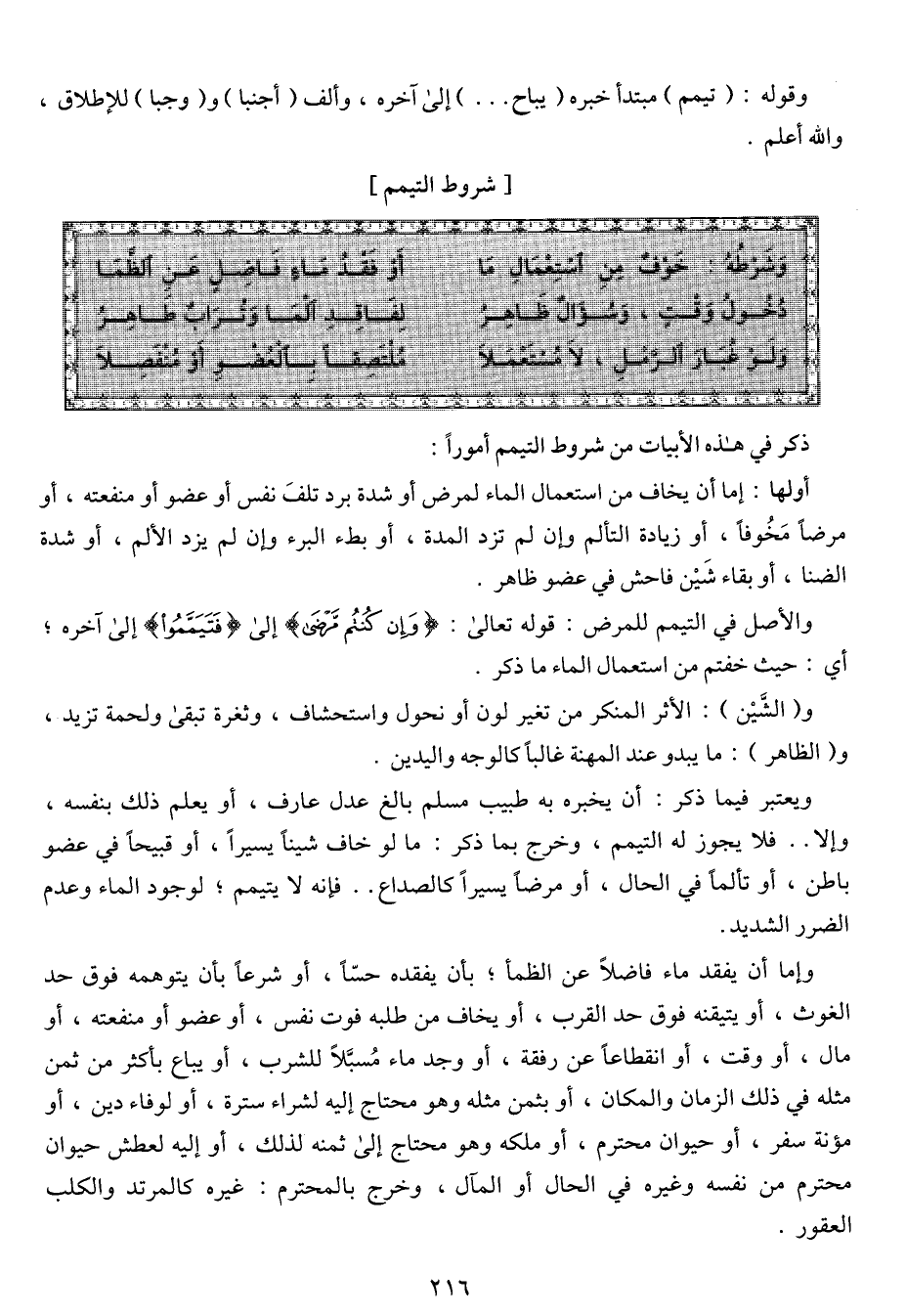 (دخول وقتٍ، وسؤالٌ ظاهر ... لفاقد الما وترابٌ طاهر)