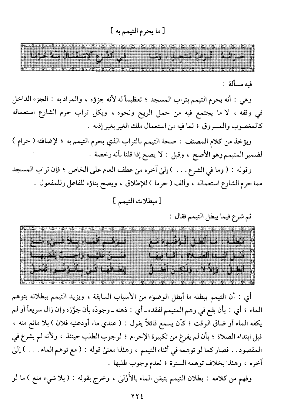 (حرامه: تراب مسجدٍ، وما ... في الشرع الاستعمال منه حُرِّما)