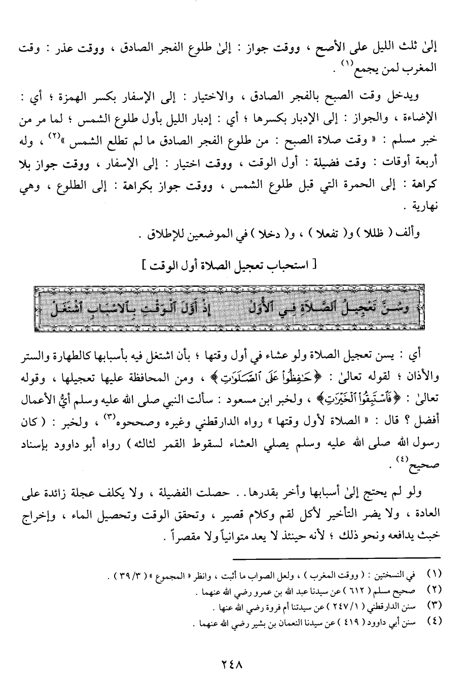 (وسن تعجيل الصلاة في الأول ... إذ أول الوقت بالأسباب اشتغل)