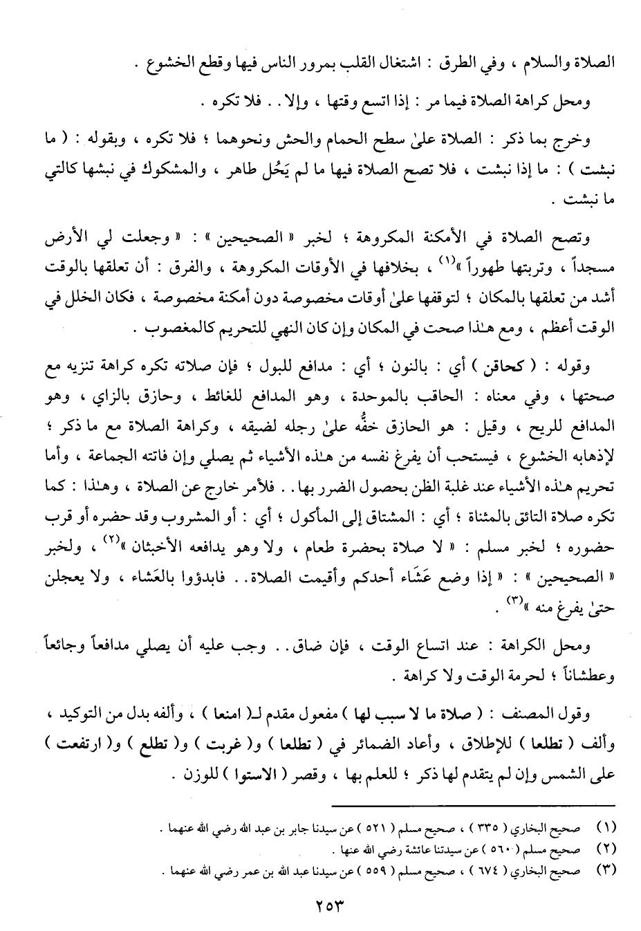 وتصح الصلاة في الأمكنة المكورهة؛ لخبر "الصحيحين": "وجعلت لي الأرض مسجدا، وتربتها طهورا"، بخلافها في الأوقات المكروهة، والفرق: أن تعلقها بالوقت أشد من تعلقها بالمكان؛ لتوقفها على أوقات مخصوصة دون أمكنة مخصوصة، فكان الخلل في الوقت أعظم، ومع هذا صحت في المكان وإن كان النهي للتحريم كالمغصوب.