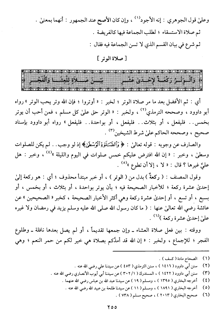 (والوتر ركعة لإحدى عشر ... بين صلاة للعشا والفجر)