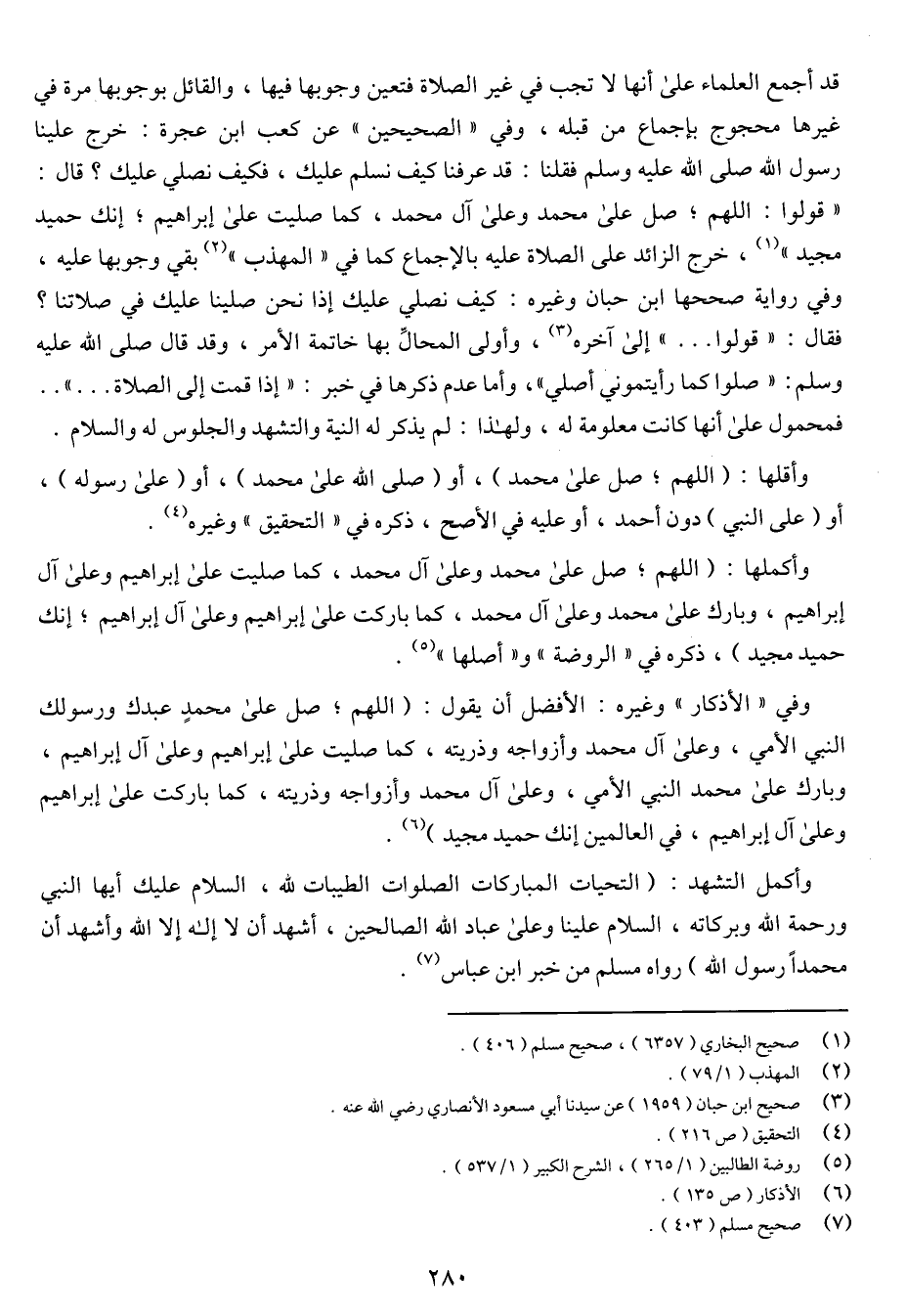 وأكملها: (اللهم؛ صل على محمد وعلى آل محمد، كما صليت على إبراهيم وعلى آل إبراهيم، وبارك على محمد وعلى آل محمد، كما باركت على إبراهيم وعلى آل إبراهيم؛ إنك حميد مجيد)، ذكره في "الروضة" و"أصلها".