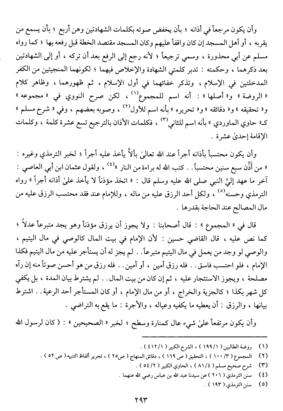 وأن يكون محتسباً بأذانه أجراً عند الله تعالى بألا يأخذ عليه أجراً؛ لخبر الترمذي وغيره: "من أذن سبع سنين محتسباً .. كتب الله له براءة من النار"، ولقول عثمان ابن أبي العاصي: آخر ما عهد إلي النبي صلى الله عليه وسلم قال: "اتخذ مؤذناً لا يأخذ على أذانه أجراً" رواه الترمذي وحسنه، ولكل أحد الرزق عليه من ماله، وللإمام عند فقد محتسب الرزق عليه من مال المصالح عند الحاجة بقدرها.