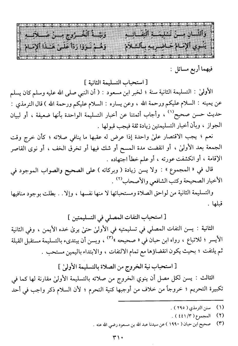 (ينوي الإمام حاضريه بالسلام ... وهم نووا رداً على هذا الإمام)