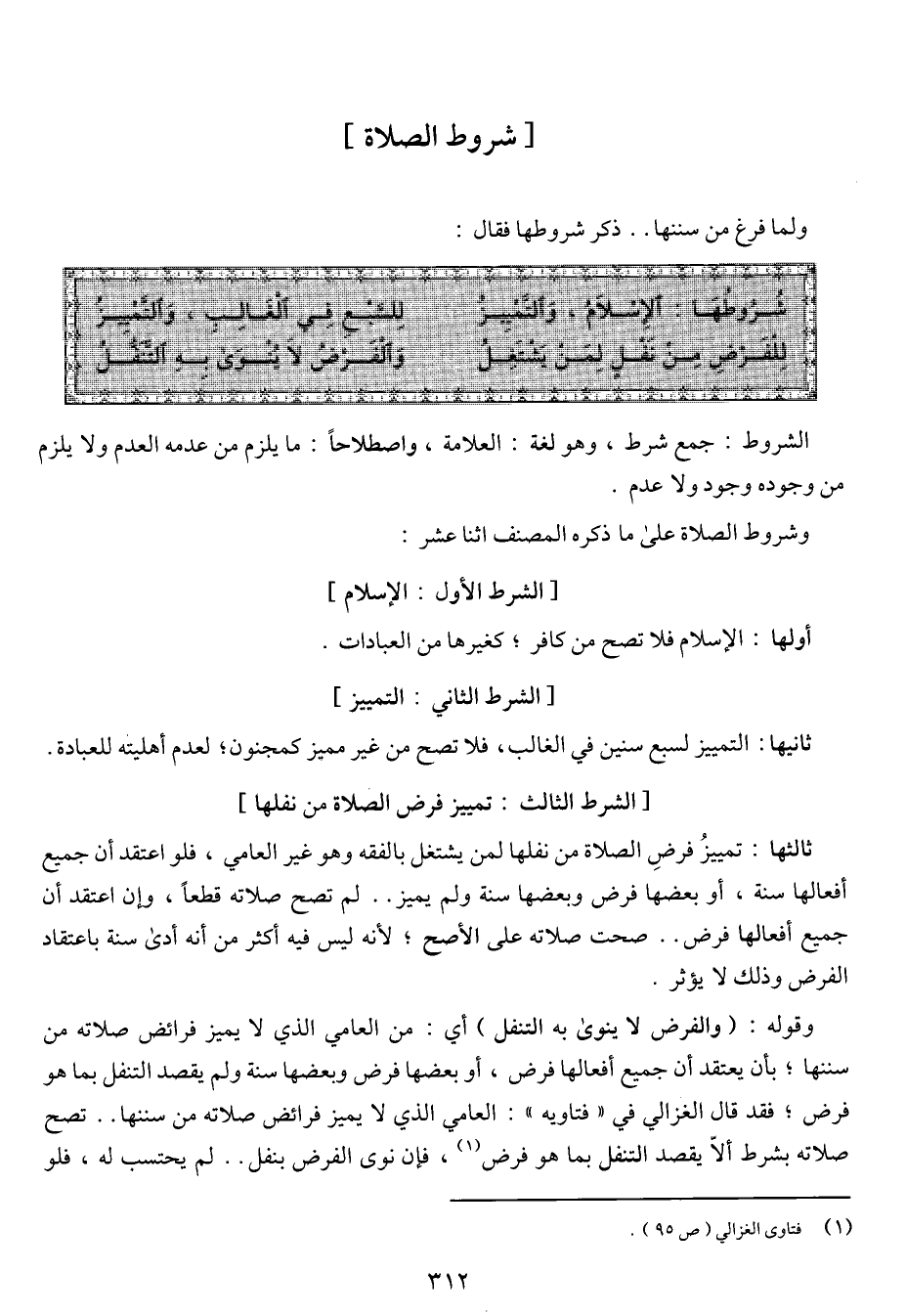 ولما فرغ من سننها ... ذكر شروطها فقال: