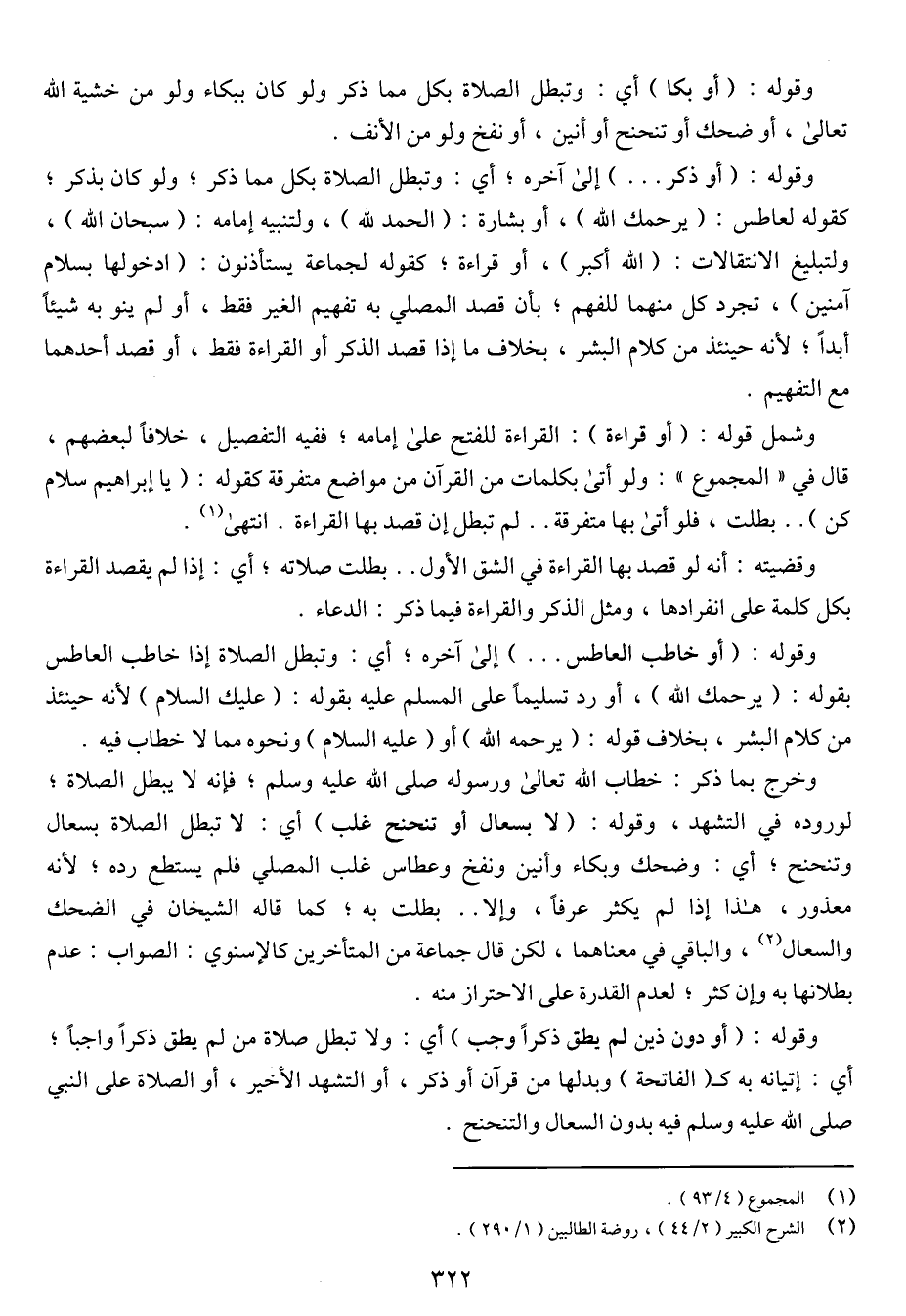 وقوله: (أو بكا) أى: وتبطل الصلاة بكل مما ذكر ولو كان ببكاء ولو من خشية الله تعالى، أو ضحك أو تنحنح أو أنين، أو نفخ ولو من الأنف.