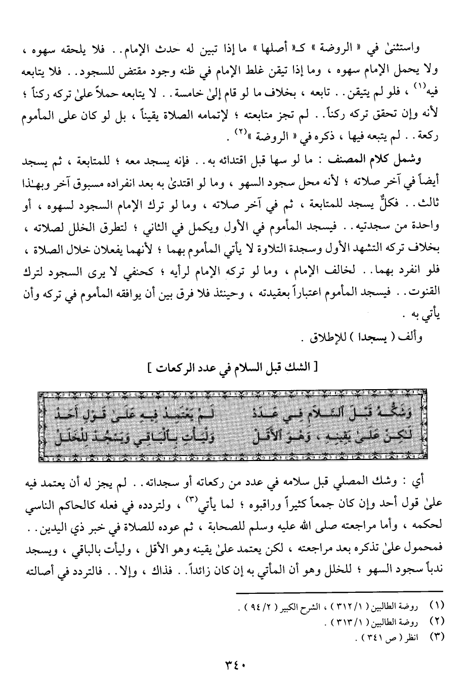 أي: وشك المصلي قبل سلامه في عدد من ركعاته أو سجداته .. لم يجز له أن يعتمد فيه على قول أحد وإن كان كثيرا وراقبوه، لما يأتي، ولتردده في فعله كالحاكم الناسي لحكمه، وأما مراجعته صلى الله عليه وسلم للصحابة، ثم عودة للصلاة في خبر ذي اليدين .. فمحمول على تذكره بعد مراجعته، لكن يعتمد على يقينه وهو الأقل، وليأت بالباقي، ويسجد ندبا سجود السهو، للخلل وهو أن المأتي به إن كان زائدا .. فذاك، وإلا .. فالتردد في أصالته